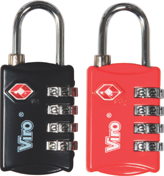 | LUCCHETTO A COMBINAZIONE VARIABILE. 4 COMBINATORI TSA. COLORI ASSORTITI. CONFEZIONE IN BLISTER. |